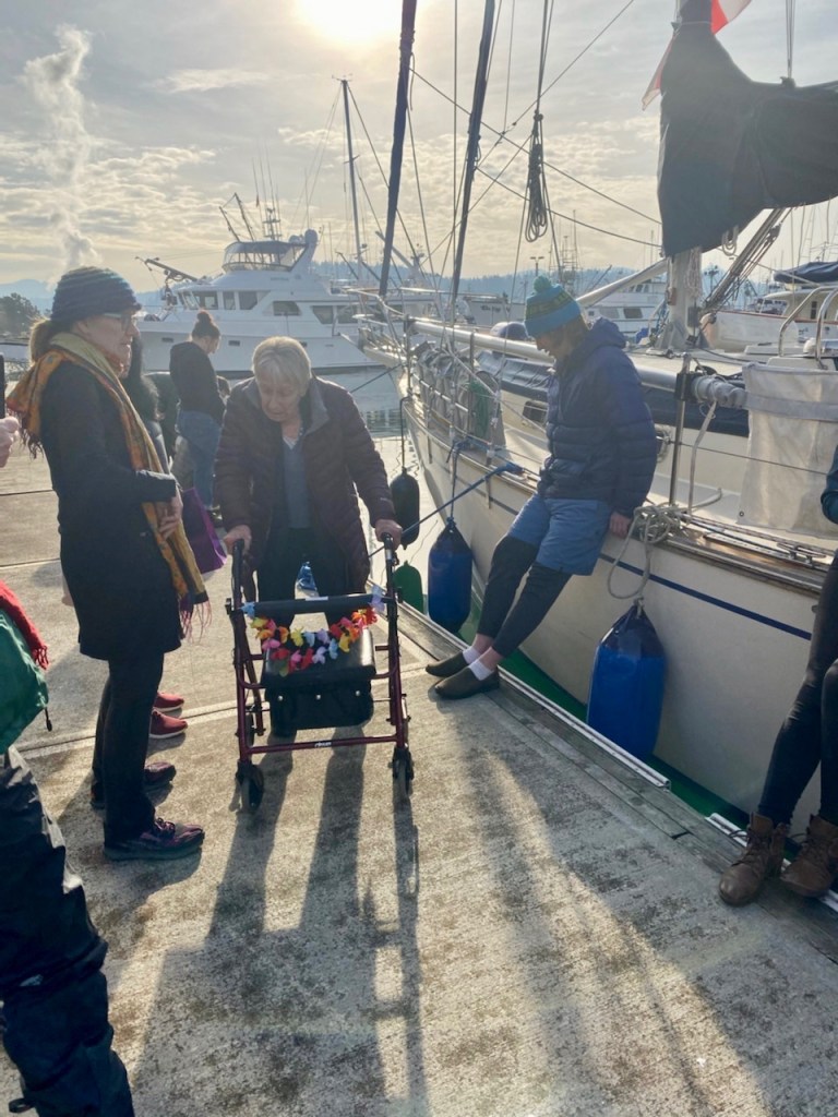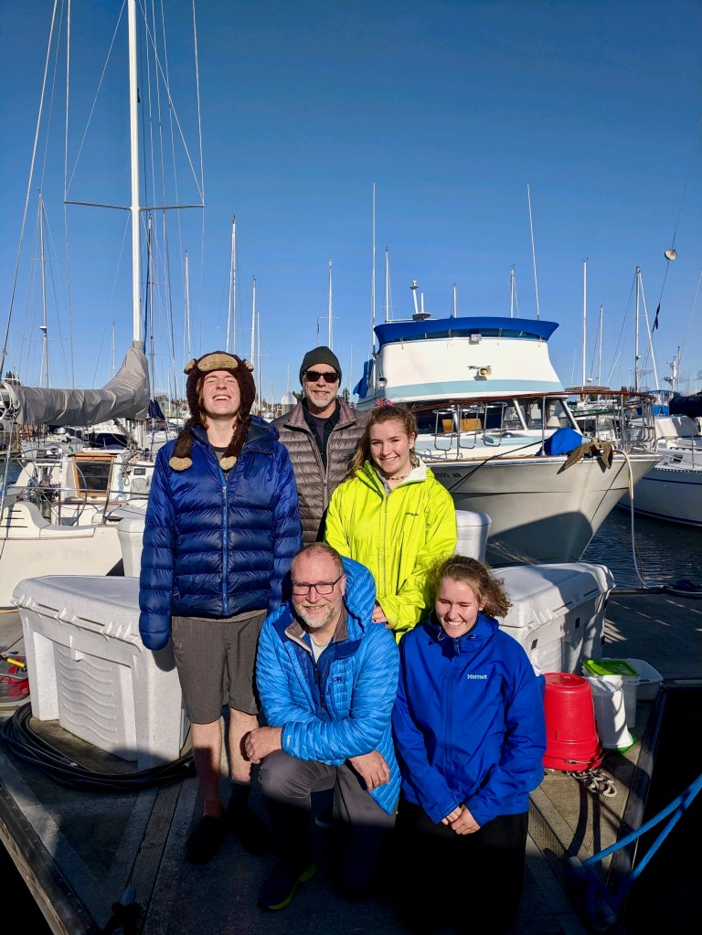 October 31st, 2019. So much to look forward to and feeling relieved and excited and happy. Thank you EVERYONE for helping us to get to this moment……A bunch of people jump on the boat to take the short trip across Bellingham Bay from Squalicum Harbor to Fairhaven. We drop them at Taylor Dock to continue on our way to Lopez Island in the San Juans for a few days to rest and prepare for the Pacific.