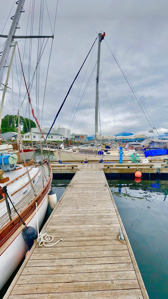 In between work we took walks and explored Sitka. The work lasted a full 10 days but we got it done in time to leave for our passage north. All that was left was to do laundry, re-fuel, (diesel, gas, propane) and stock up on food and water. Paul spent time “overseeing” work and plotting our upcoming 3 day passage to Gustavus and monitoring weather