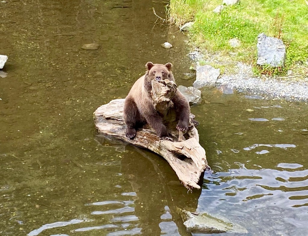 A highlight of our time in Sitka and our only touristy activity was visiting the Fortress of the Bear. This is a privately funded bear sanctuary. As was explained to us by the head bearkeeper, there is no place for orphan bears in Alaska. The Alaskan bear population is thriving and when mother bears are killed or euthanized (when they become a problem), the cubs are also euthanized.